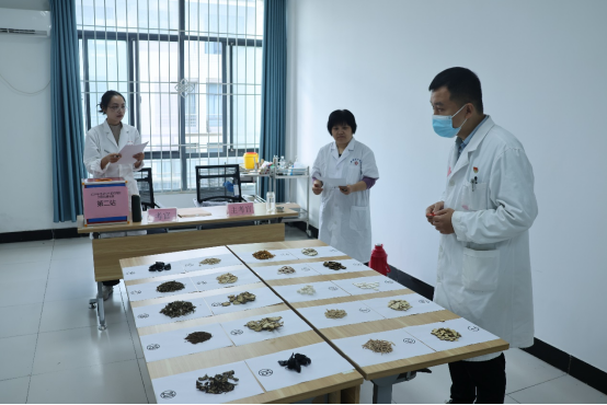 此次竞赛分为理论竞赛和技能竞赛两个部分,理论竞赛采用闭卷的方式进行,技能竞赛分为舌诊、常见中药辨识、病案分析和脉诊四个考站。信阳市卫生健康委三级调研员唐显东、中医科科长郭海平到比赛现场观摩指导。
