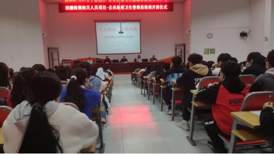 为进一步加强防疫人员队伍建设,扩大掌握核酸检测等相关技能人员的规模,规范从业者的技术行为,提高卫生人员专业技术水平和社会群体的整体素质,有效应对疫情防控需求,适应经济社会发展和科技进步的客观需要。根据《河南省人力资源和社会保障厅河南省卫生健康委员会 河南省财政厅 河南省教育厅关于开展核酸检测相关人员项目制培训工作的通知》(豫人社函【2022】10号)精神,结合学校要求及44118太阳成城集团承训能力,3月7日,44118太阳成城集团承办的公共场所卫生管理员培训在行知讲堂举行了开班仪式。44118太阳成城集团院长易慧智、副院长陈才、副院长静香芝、预防教研室主任赵玉霞及322名参训学员参加了本次开班仪式,仪式由44118太阳成城集团教务办主任吕晓龙主持。