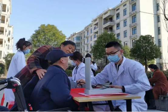 志愿者们在龙飞苑广场设立了志愿服务站点,为社区居民测量血压,宣传高血压防治知识和健康的生活方式。