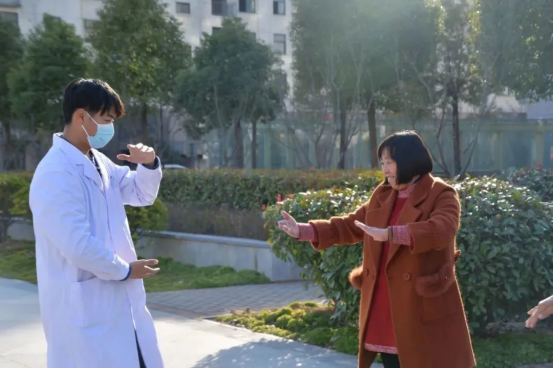 志愿者们耐心地教社区居民打太极拳,居民们热情高涨,积极主动跟志愿者沟通交流太极的招式动作,你纠正我的动作,我与你讨论心得,大家伙都全身心地投入到了太极招式的学习中,现场氛围热烈非凡。