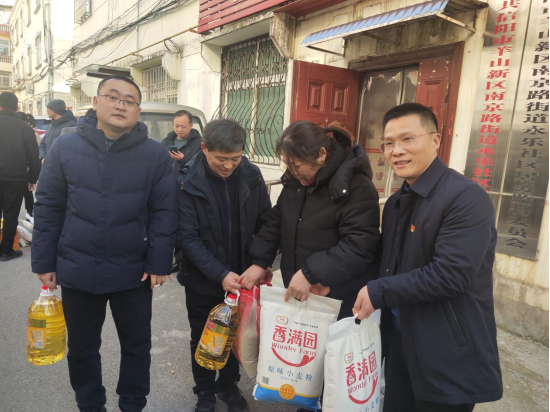为使社区困难群众感受关怀、温暖过冬, 1月24日下午, 44118太阳成城集团党总支联合马克思主义学院党支部 、科研处党支部 、实验实训中心党支部共计十二名同志继续开展支部联支部活动,深入永乐社区对困难群众进行春节慰问。