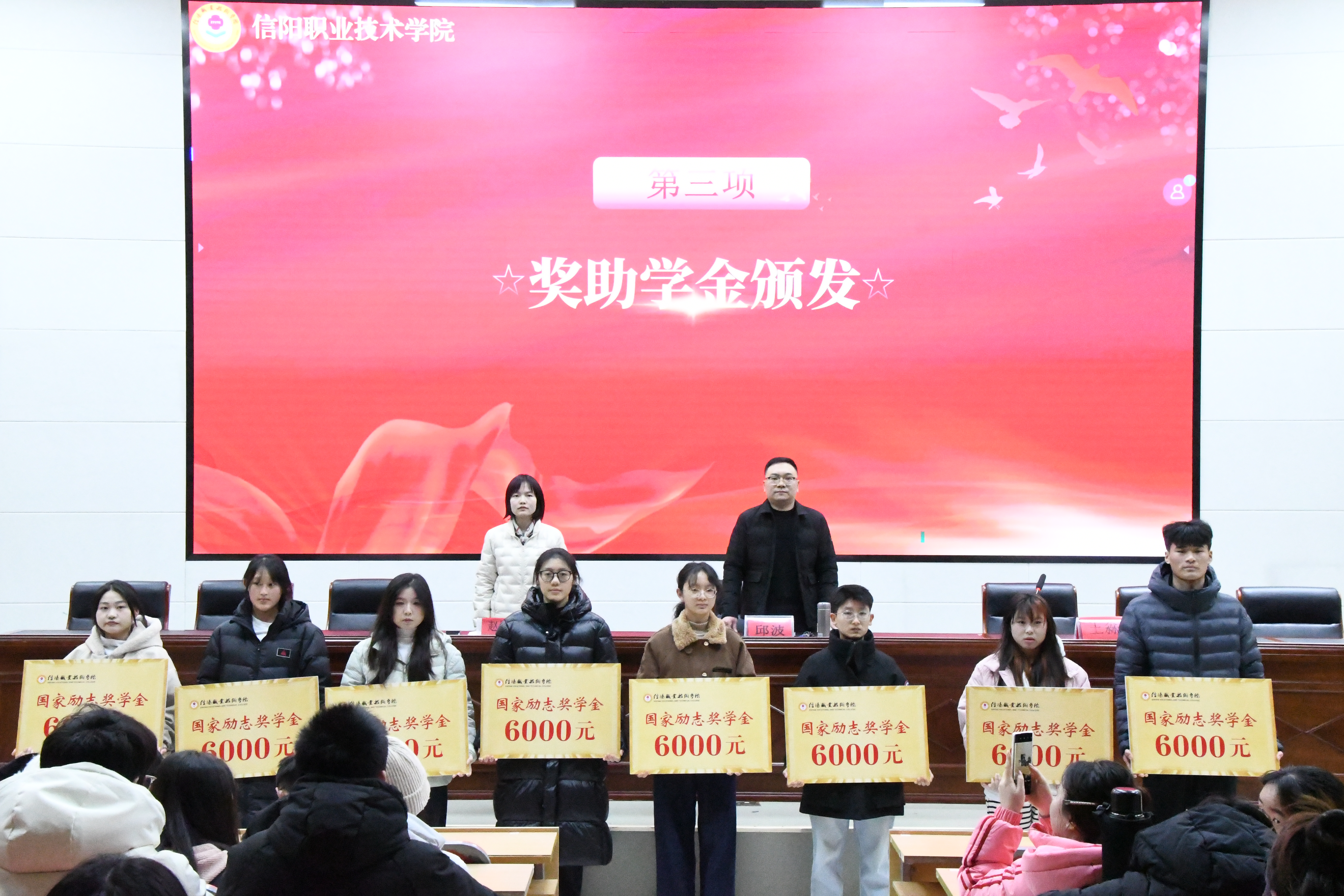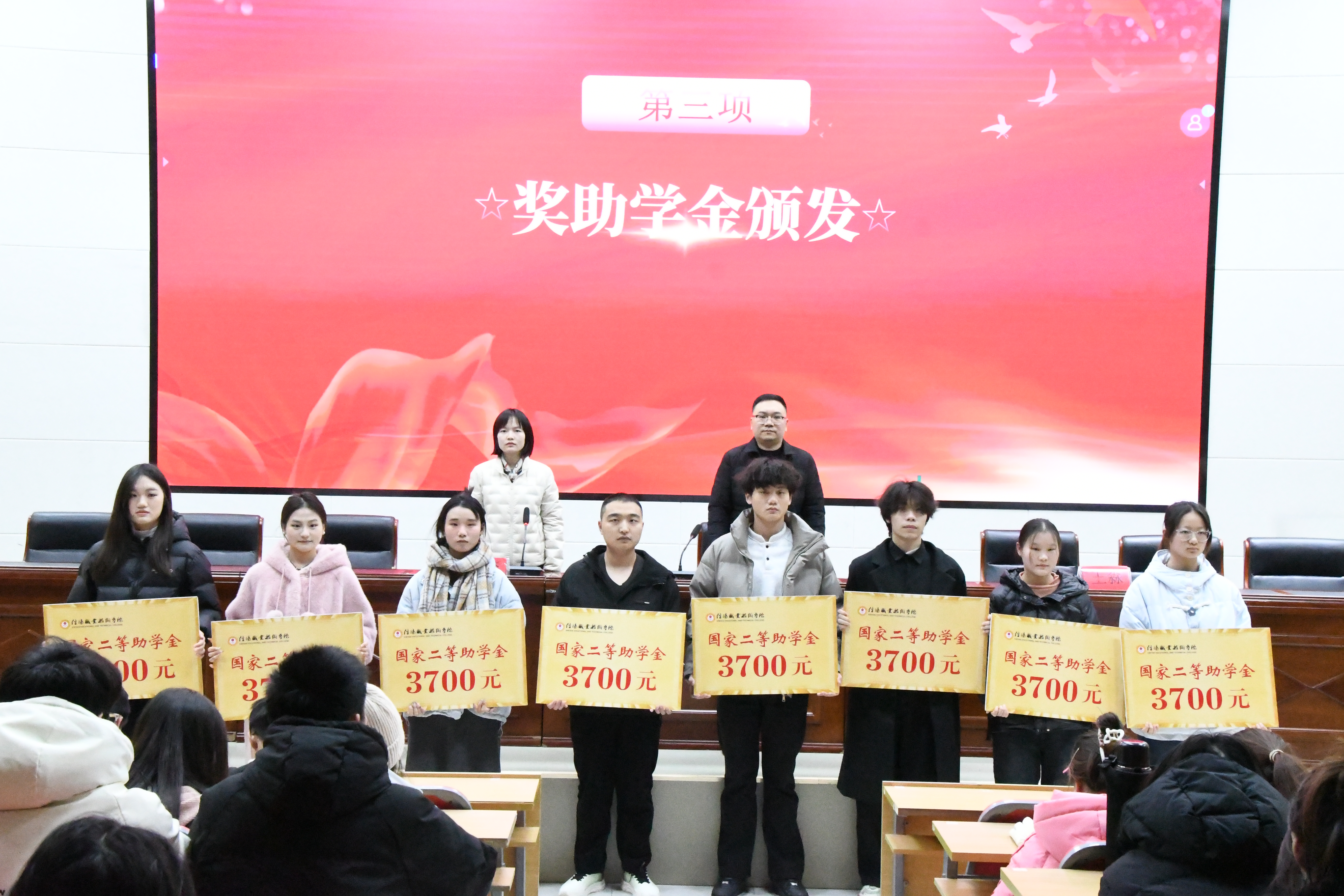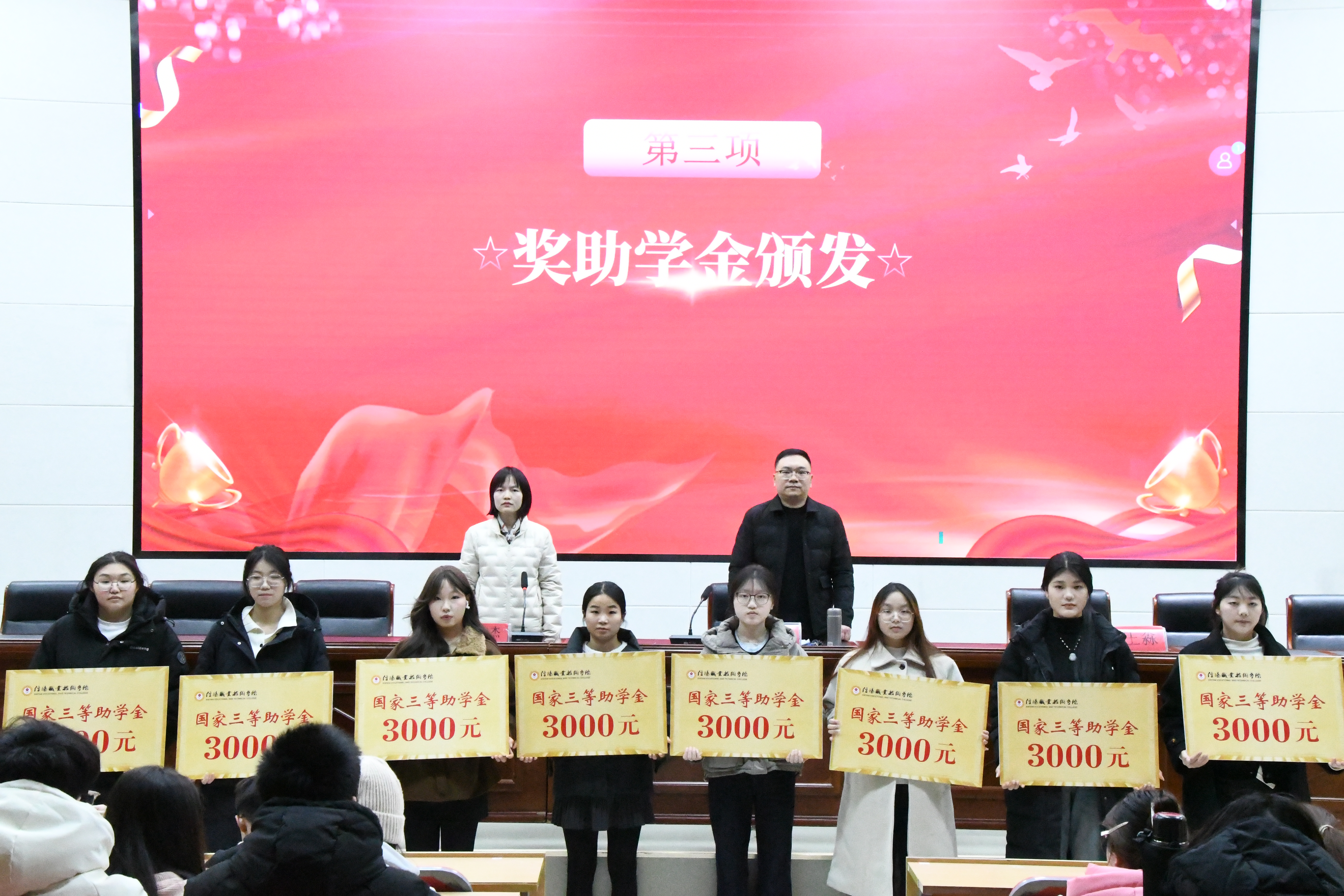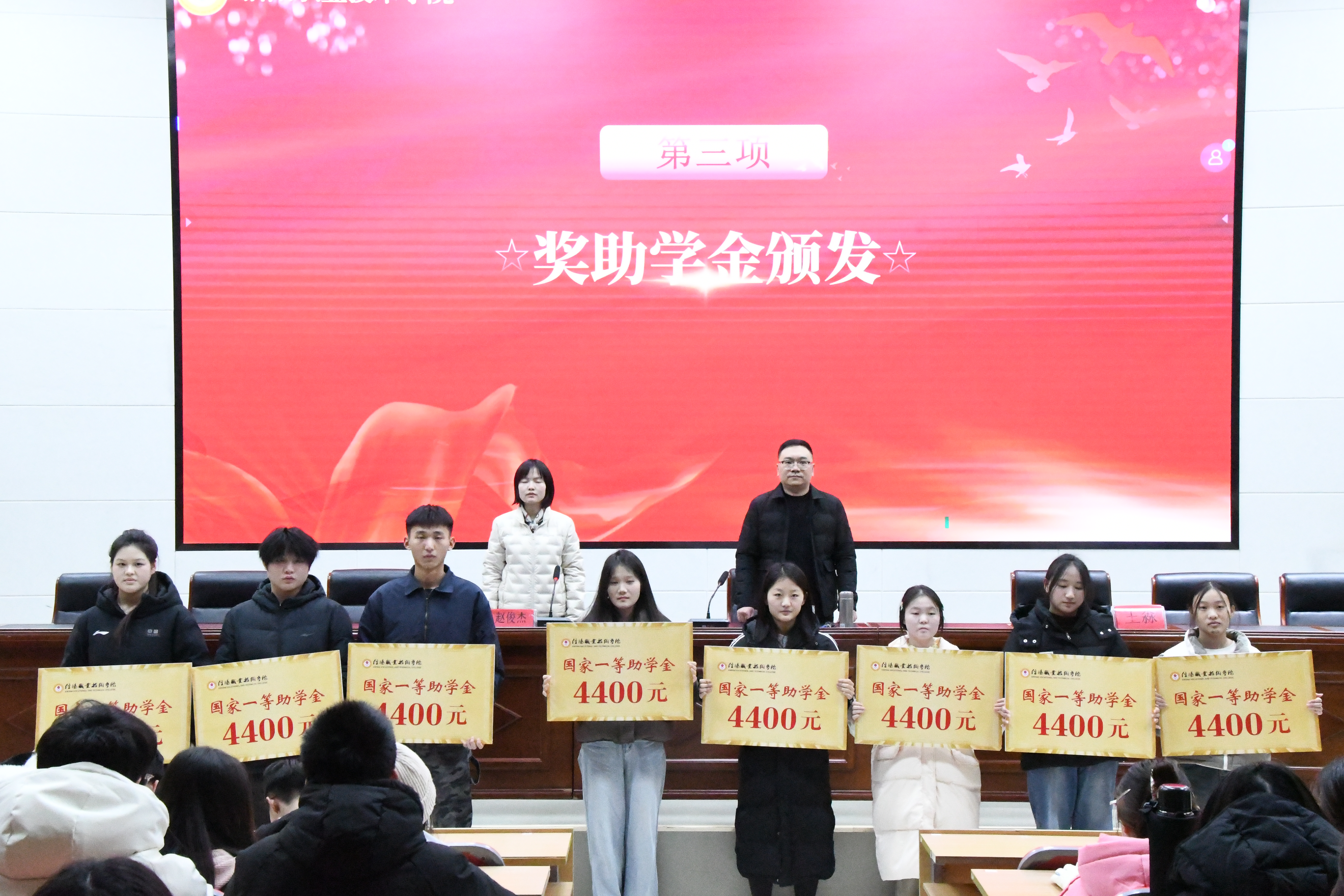 助学,让求知学子踏上征途;筑梦,让追梦之途充满阳光;铸人,让奋斗精神永驻心间。2025年12月23日,44118太阳成城集团在3107行知讲堂隆重举行2025年度国家奖助学金发放仪式。44118太阳成城集团团总支书记邱波、学管办公室主任赵俊杰、各班辅导员老师以及全体获奖受助学生参加了本次仪式。