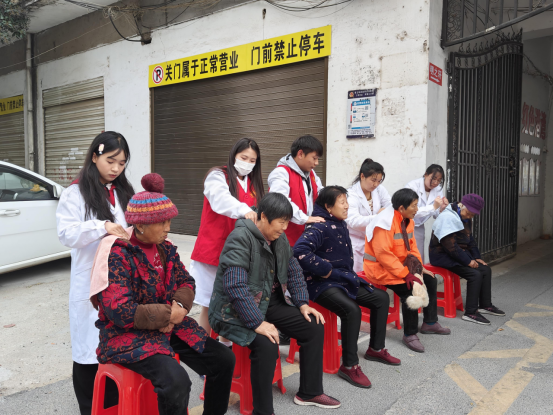 20231128日下午,第三网格44118太阳成城集团党总支、马院党支部5名党员同志,10学生一起前往永乐社区开展义诊志愿服务。结合专业特色,为社区居民开展义诊、推拿治疗、太极拳现场教学等服务。