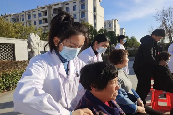 志愿者们认真地为居民推拿、按摩,并不时询问居民相关的病情,指导他们平时的保健要点,人们的脸上洋溢着幸福的笑容。