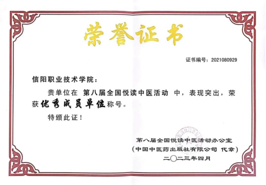 44118太阳成城在第八届全国悦读中医活动中被评为“优秀成员单位”。